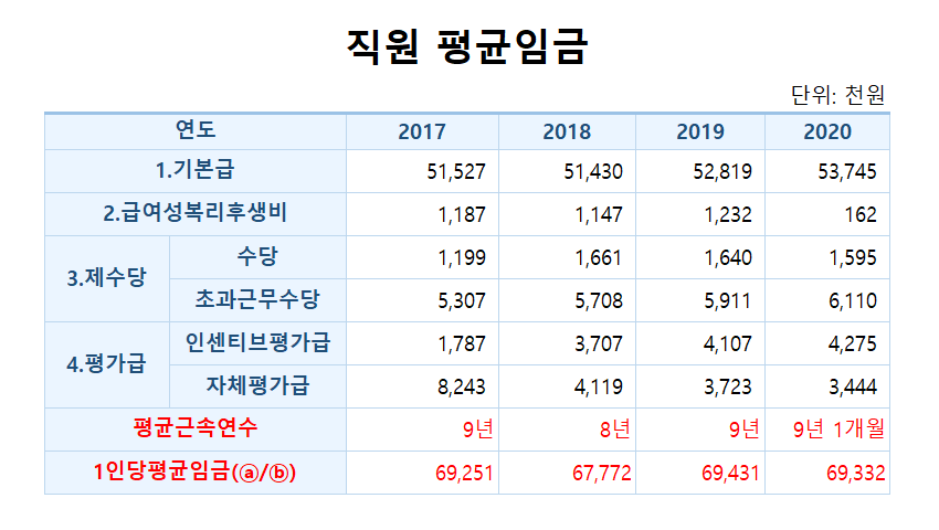 2. 2020년 직원 평균임금