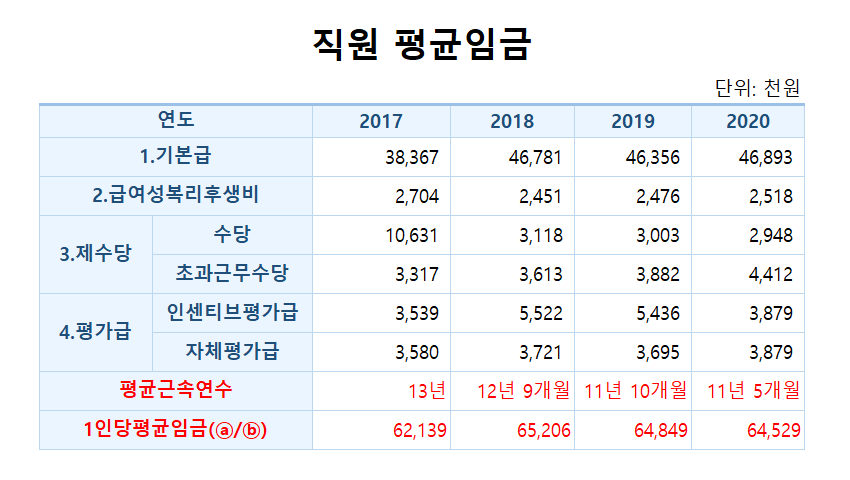 그리고 규정을 바탕으로 대구환경공단연차별 연봉 계산