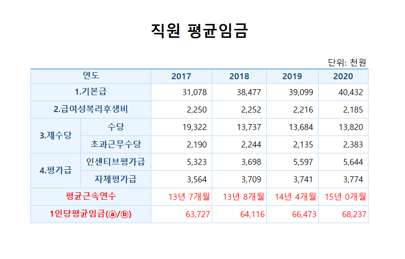 2. 2020년 직원 평균임금