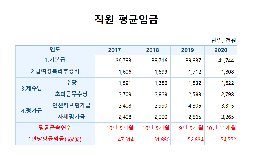 2. 2020년 직원 평균임금