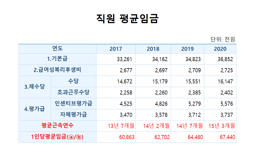 2. 2020년 직원 평균임금