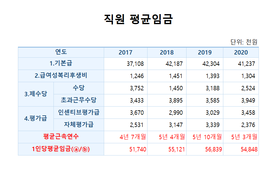 2. 2020년 직원 평균임금
