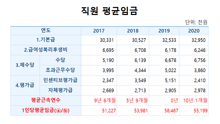 2. 2020년 직원 평균임금