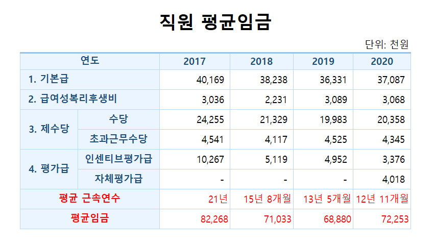| 20년차 | 3직급 | 20호봉 | 8,290 만원 |